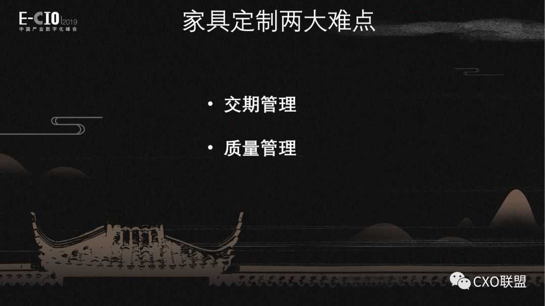 Today we focus on two points, furniture customization inside the two major difficulties. One is delivery management, the other is quality management, any enterprise as long as the manufacturing industry has similar pain points. But this pain point in the furniture industry, custom industry is how to solve it? How it’s presented. Yesterday, I shared the training of CIO at the conference, whether CIO has the ability to grasp the pain points of the business, whether you have the ability to find some methods, including finding some strong support for the business department. As Manager Wang mentioned just now, when you find this movement to solve this problem, you are not a point, but a point with a face to solve these problems. So today I will focus on this.
