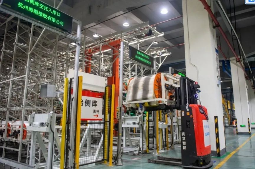 走进位于浙江杭州钱塘新区的中策橡胶集团高性能子午胎未来工厂,迎面一台AGV物流机器人“捧”着一摞橡胶材料快速移动而来,就在记者想着要不要侧身躲开的时候,它平稳地停了下来,等“障碍物”走开后,又继续运料工作。