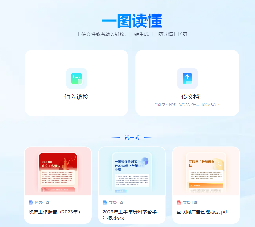 最近,跃问还上线了一个新功能“一图读懂”,用户可以上传文档,跃问将一键生成解析重点的长图文,这是之前ChatBot未提供的功能,为用户提供了全新的体验。