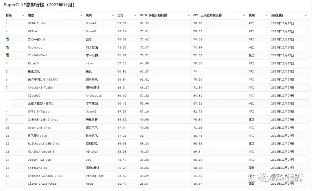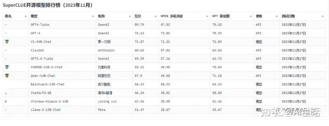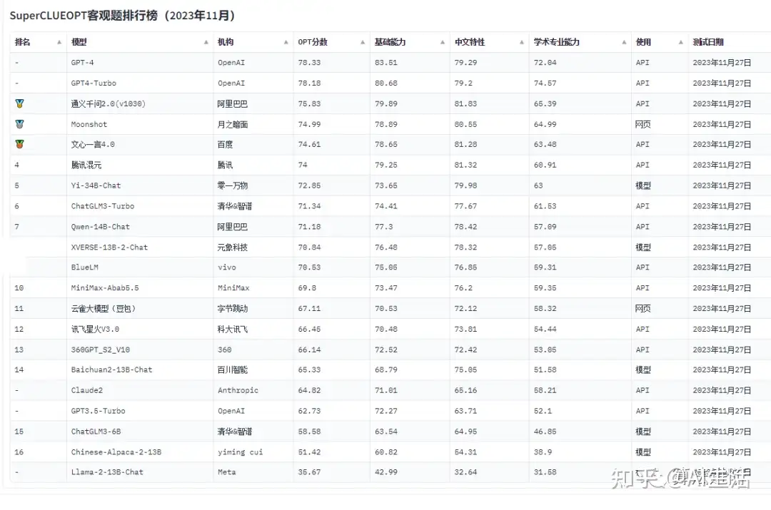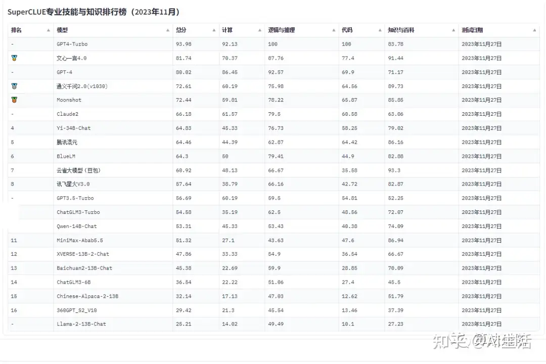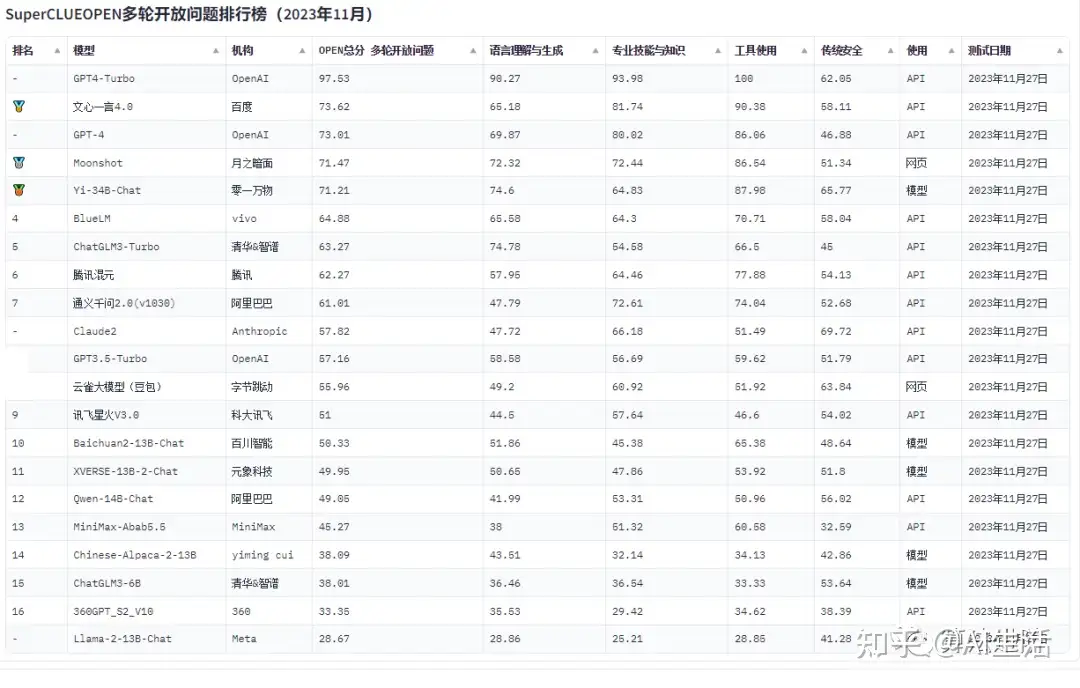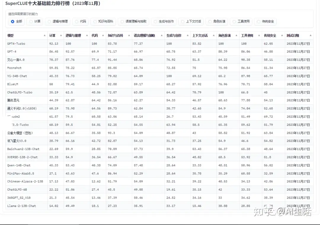 附1:国内外人工智能AI大模型排行榜: