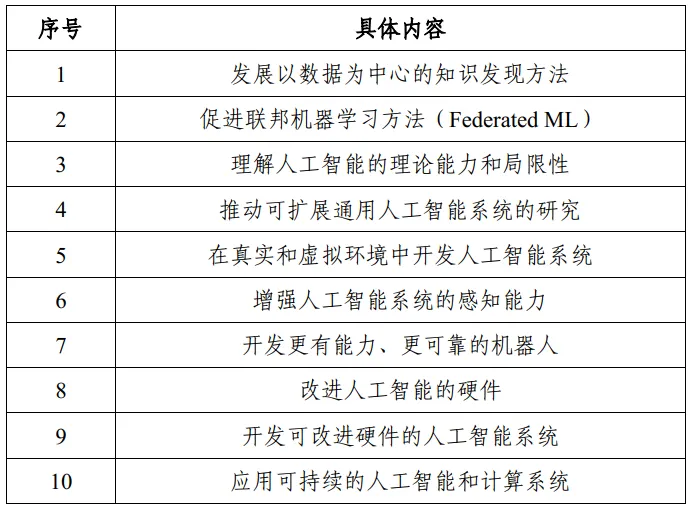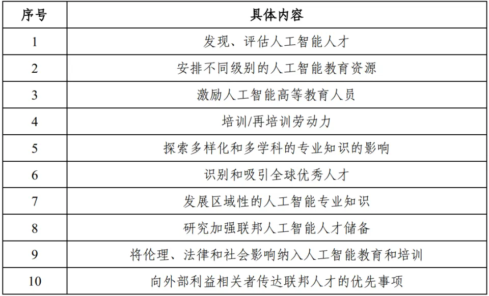 改善研发人员的发展机会,战略性地培养美国的人工智能人才。这需要通过研究来进一步理解人工智能和相关工作的局限性和可能性,并且提升与人工智能系统有效交互所必须的教育及流畅度。