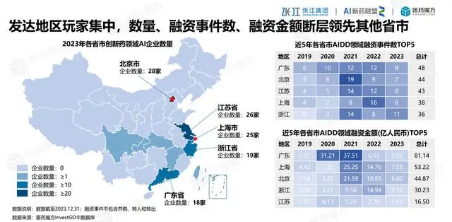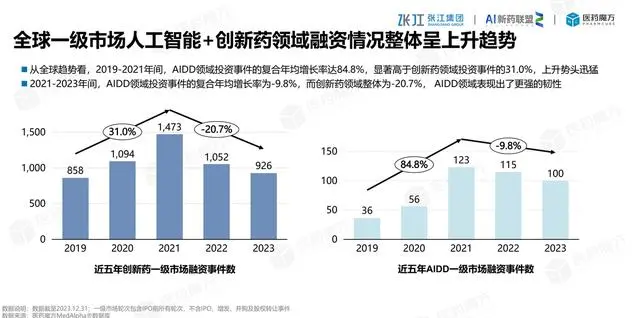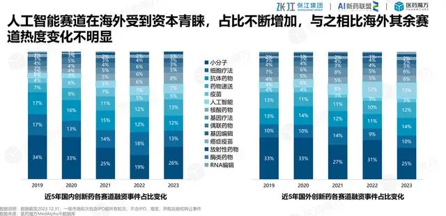 从全球趋势看,2019-2021年间,AIDD领域投资事件的复合年均增长率达84.8%,显著高于创新药领域投资事件的31.0%,上升势头迅猛2021-2023年间,AIDD领域投资事件的复合年均增长率为-9.8%,而创新药领域整体为-20.7%,AIDD在制药行业的研发中跟随者制药行业在创新药中的应用需求下降而下降。由于不在风暴中心,从而体现出下降幅度低于创新药的需求变化。也体现出市场对AI在制药行业应用的激情逐渐消退,回归理性。未来随着经济复苏,AI在制药行业的应用必将会再次得到更大的应用,毕竟AI确实能够降低人工使用和时间损耗成本。 数字化转型网www.szhzxw.cn