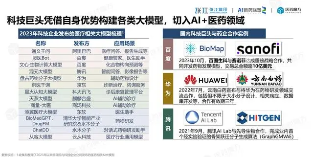 国内多个大模型进行了医药研发的AI协作。百度AI从赛诺菲那拿到10亿美元合作药物发现,华为也和云南白药合作进行分子设计数据库开发,虽然不知道云南白药到底要干什么,想想应该是两个方面,一方面就是继续开发研究保密配方云南白药粉的价值空间,另外就是云南白药有140现金放在手上,等到打开收入天花板,白药的意愿肯定是有的。 数字化转型网www.szhzxw.cn