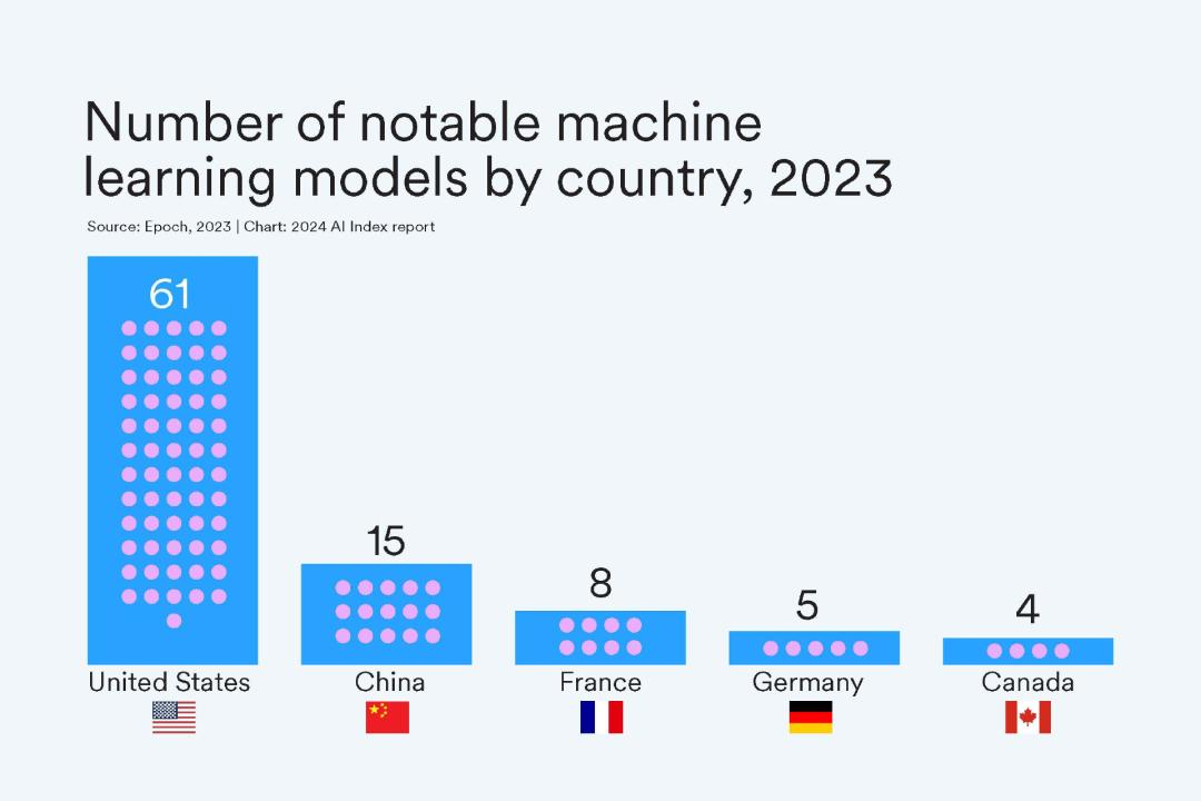 4.美国成为顶级人工智能模型的主要来源国。