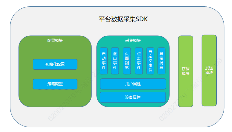 The SDK consists of configuration module, collection module, storage module and sending module.