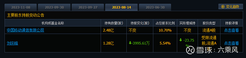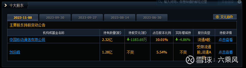 公司两大股东中国移动、刘庆峰多次减持。中国移动自从上述 2012 年 8 月 24 日披露《权益变动报告书》和权益变动公告至今累计减持的比例为 1.62%。上述减持股份的来源为科大讯飞 2013 年非公开发行的股份。2012 年 8 月 23 日,中 国移动拟通过认购公司向其非公开发行的新发行股份,对公司进行战略投资。
