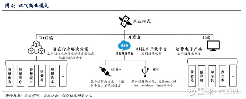 随着科大讯飞各赛道示范验证持续显现, 公司 已经在教育、 医疗、 智慧城市、 企业数智化转型等重点赛道构建起可持续发展的“战略根据地”, 并在 AI 学习 机、 智能办公本、 智能录音笔、 翻译机、 智能助听器等 C 端智能硬件产品上形成了 领先的品牌和可持续流水型收入; 另 一方面, 科大讯飞在关键核心技术持续高强度研发投入形成代差优势的同 时, 进一步整合创新链条上关键技术打造“系 统性创新” 优势, 从语音到图 像再到认知, 持续性地实现突破并将新技术切入到各赛道应用 上, 实现对各行业的赋能。