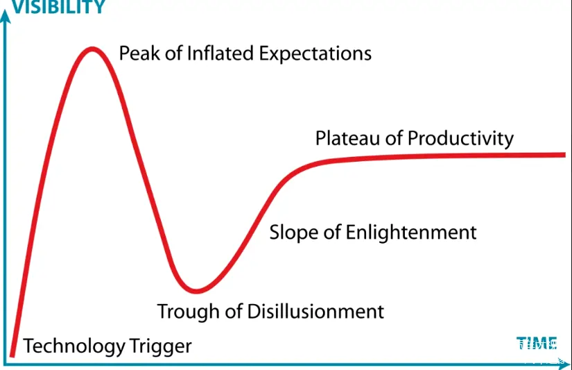 美国咨询公司高德纳咨询公司Gartner,发布了一条被称之为“高德纳技术成熟曲线”,用来说明技术和科技创新,给人们带来的价值感受。人们会在某一时期,对新技术过度乐观、高估其实用性,忽视其限制以及弱点,这会造成对新技术的过高期望和过度投资,产生大量的浪费。