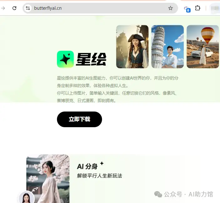 七、星绘:AI相机,创建AI分身、AI修图、文生图