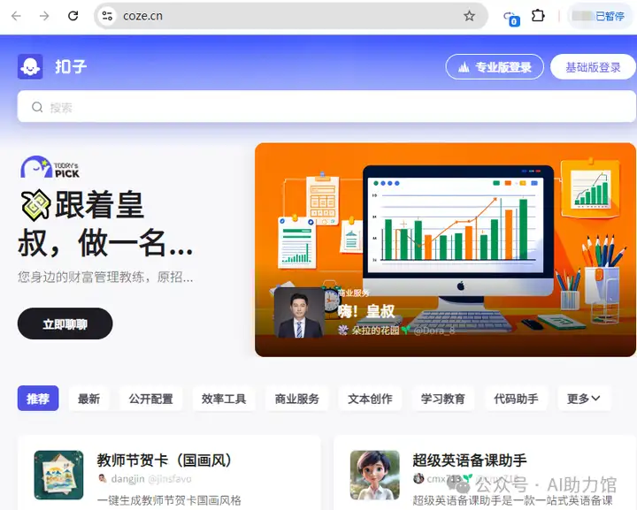 八、扣子:AI聊天机器人构建平台,可快速创建并发布聊天机器人