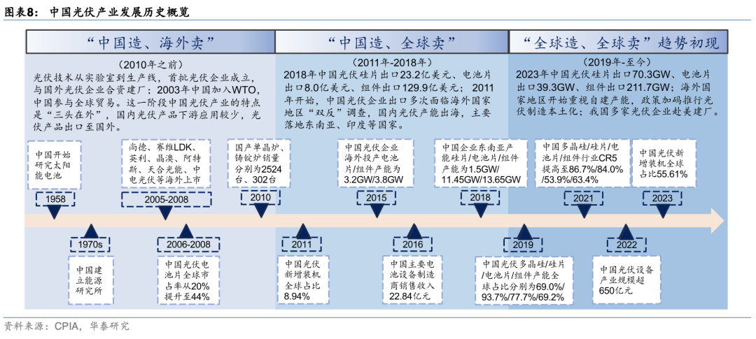 光伏产业从“中国造、海外卖”到“中国造、全球卖”,再到“全球造、全球卖”。接下来,相关企业的基本盘不只是国内光伏企业的需求,而是全球光伏企业的需求,因此只要全球光伏总的装机需求逻辑不受影响,则我国光伏设备的需求基本盘就不会受到太大影响。