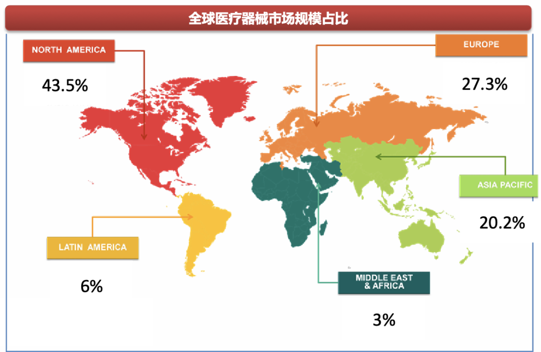 除了“新三样”的成功海,还有一些产业同样表现得非常出色。例如医疗器械。全球器械市场主要由美国(43.5%)、欧洲(27.3%)贡献,而两地总人口不到10亿,以中国为主的亚太市场、以及拉美、中东、非洲等发展中国家市场,整体占比约30%,但人口超过70亿。后续,发展中国家增速快于发达市场,国内器械出海——进可攻发达市场,退可守发展中国家市场,何乐而不为?