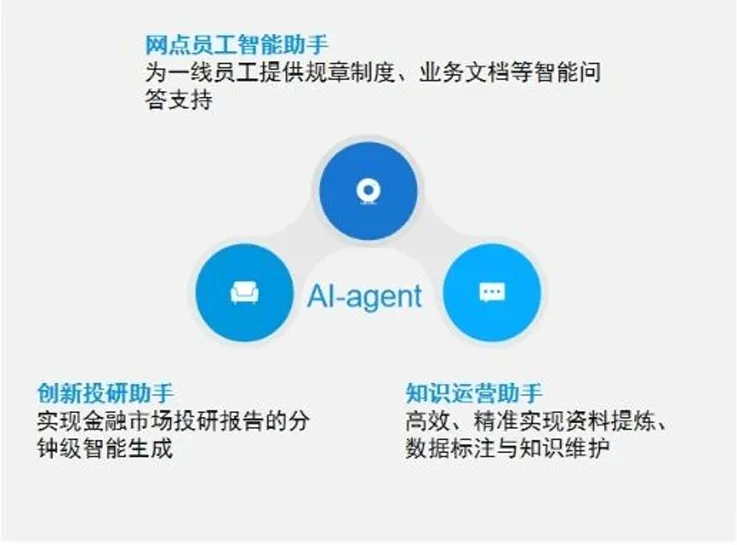工商银行与鹏城实验室、清华大学、中国科学院、华为等联合发布了基于昇腾AI的金融行业通用模型,首家实现了企业级金融通用模型的研制投产。当前已应用于人工智能助手、知识运营助手、金融市场投研助手等多个场景。