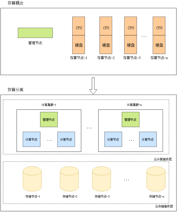 计算存储分离的理论概念出现很早,但是受限于网络带宽,大数据发展初期业界大多使用计算存储耦合的设计思想,这种设计思想采取了“移动计算到存储”的方式来减少数据在运算节点间的移动,通过运算的本地化来节约网络通信开销。