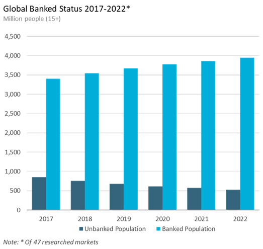 嵌入式金融对于东南亚市场来说并不陌生,这得益于互联网经济的快速增长,同时传统金融的渗透率相对较低。在 2023 年,越南拥有银行账户的人口预计占总人口数约 75%,在印尼则只有约 52%,以印尼当年 2.78 亿的人口来计算的话,则大概有 1.5 亿人口没有任何银行账户,相比之下在发达经济体中传统金融的覆盖率一般超过 90%。2017-2022年全球银行服务覆盖情况