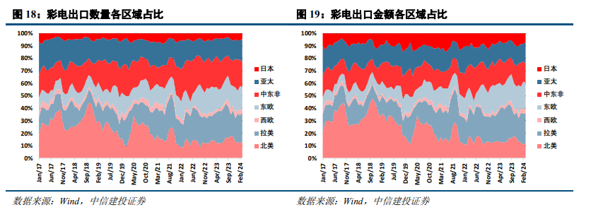 (2)黑电:出口区域结构发生显著变化,新兴市场占比明显提升
