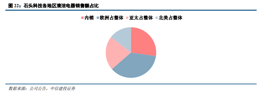 以出口绝对金额最大的扫地机龙头石头科技为例,欧美为其主要出口市场,2023年欧洲市场约占外销的50%,北美市场约占20%,亚太市场约占30%。