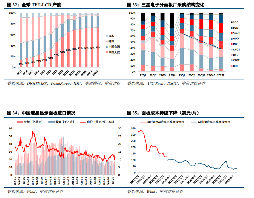 面板端:中国面板产能增加推动成本下行,韩企采购战略变化短期成本增加。