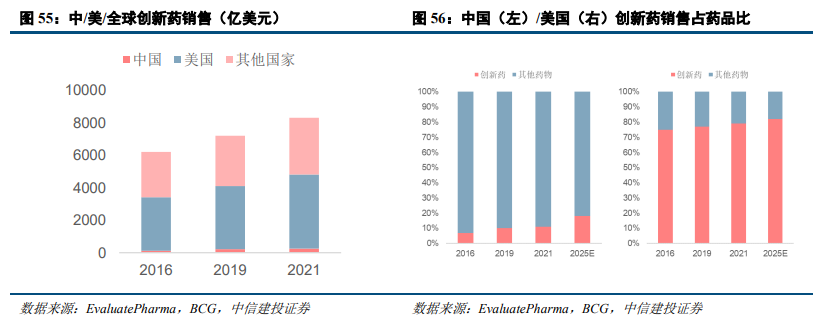 近年来,随着中国创新药蓬勃发展,越来越多的中国药企将目标转向海外,以赢得更多的发展机会和市场份额。综合来看,中国创新药市场与海外仍有较大差距,2021年全球创新药市场约8300亿美元,其中美国创新药占比超50%,是创新药最重要的终端市场。而从药品销售占比看,美国创新药占药品销售79%,中国创新药占药品销售仅11%。