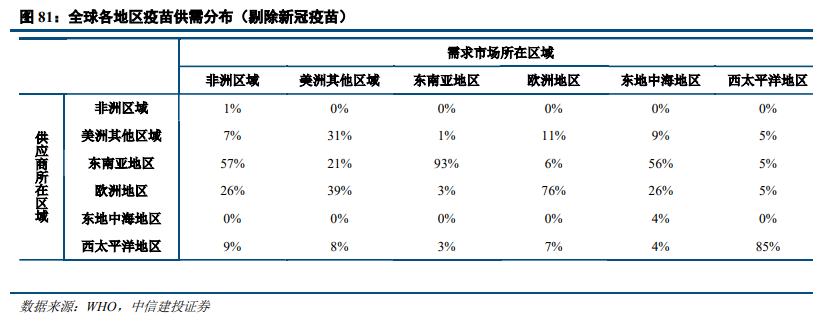 多款疫苗纳入多国免疫规划,部分地区疫苗自给率低。截至2022年底,在WHO 194个会员国中,有163个会员国将肺炎结合疫苗(PCV)纳入国家免疫规划;127个会员国将HPV疫苗纳入国家免疫规划,其中包括新引进该疫苗的14个国家。目前全球疫苗市场存在区域供给与需求分布不均的情况,在一些地区,疫苗几乎完全由总部位于该地区之外的制造商提供,这种情况可能会造成严重的公共卫生问题。2022年非洲和东地中海地区分别有99%和94%的疫苗产品由总部位于其他地区的制造商供应。相比之下,由于供应商相对较多,东南亚和西太平洋地区使用来自同一地区的疫苗的比例最高,分别为79%和78%。因此,全球多地政府希望通过建设当地的疫苗生产能力,实现疫苗自给自足。