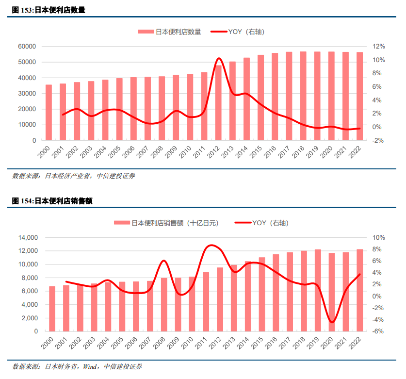 日本国内便利店市场逐渐接近饱和,集中度提升空间有限,企业出海寻求机遇。人口增长放缓和经济低迷,日本便利店市场逐渐饱和,2000年以来日本便利店数量年增速仅为小个位数,近年来日本便利店数量开始减少,同时CR3份额已经接近90%,存量市场难以有较大的份额提升空间。由于国内市场饱和,日本便利店企业将目光放到市场庞大和经济快速增长的中国和东南亚。