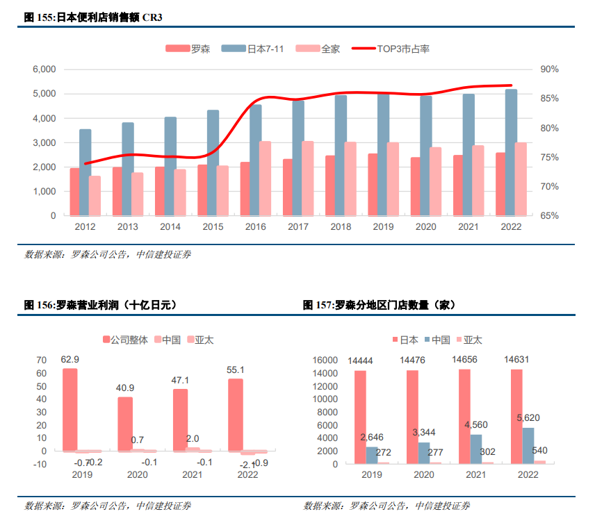 以日本便利店企业罗森为例,罗森早在1996年进驻中国,2003年门店数量仅为约100家,2010年-2012年中国门店数量维持在300家左右, 2015年之后罗森加速开店。即便深耕中国多年,罗森中国业务多数时间仍处于亏损状态,主要原因为中国本土零售市场的激烈竞争、合资导致的经营管理权分散、中国文化和消费习惯不同于日本、加盟管理体系不同等等。