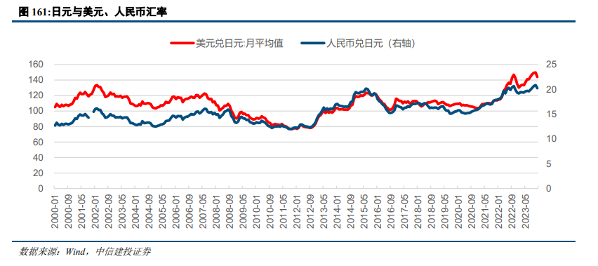 2012年以后,日元对美元、人民币均贬值,赴日旅行享有汇率优势。2012年后安倍晋三实施宽松货币政策,日元汇率大幅贬值,美元兑日元由2012年的80左右贬值至2015年的120左右,100日元兑人民币由2012年的8左右贬值至2015年的5左右。