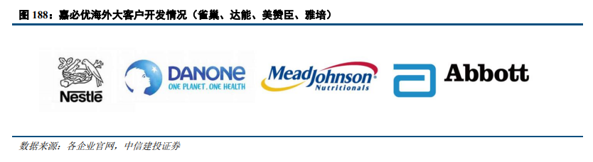 产品质量备受国际权威机构认可。仙乐健康已通过欧盟、美国、英国、澳洲、中国16大权威认证,其中公司检验中心获得中国合格评定国家认可委员会CNAS认可证书,质量控制体系获得全球主要食品质量控制体系认证,产品质量过硬,安全性和有效性获得行业认可和优质客户背书,缩短了新客户开发周期。嘉必优率先打破国外垄断,于 2003 年建成国内第一家 ARA 产业基地;2012年,嘉必优实现了藻油DHA 产业化。