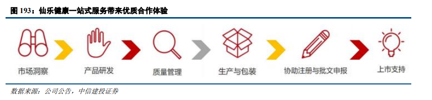 保健品行业一站式服务给客户带来优质合作体验,客户粘性强。仙乐健康提供的合同研发生产模式包括三种模式,委托生产、定制开发和自主开发。委托生产指公司100%根据客户配方组织生产、交付;定制开发指公司根据客户需求,为客户定制化开发产品、组织生产,并提供上市支持;自主开发指公司根据自行组织的需求调研和市场研究,对新技术、新原料、新包装形式以及新配方组合,制定产品策略,开展新产品规划。公司通过快速响应的研发、供应链服务,以及领先的产品技术深度绑定高价值客户,并提供市场调研、营销方案策划等附加值服务,以确保客户新品转化率得到有效提升。