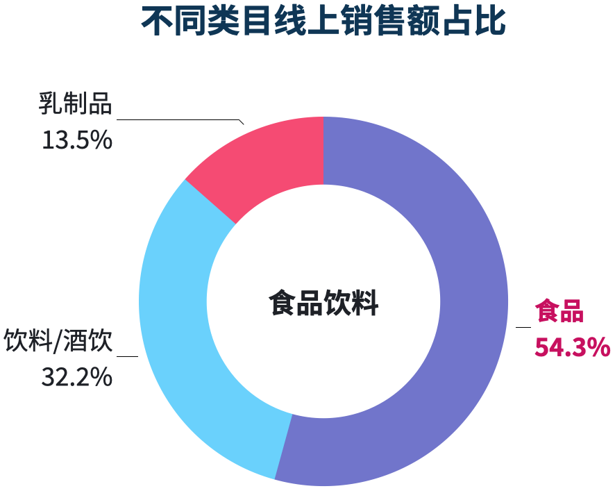 品类上,食品占了50%的市场比重,随后是饮料/酒饮、乳制品。