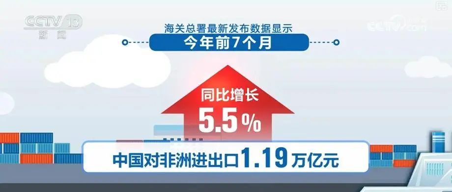 根据海关总署的数据统计,2000—2023年,中非贸易规模由不足1000亿元增长至1.98万亿元,年均增长17.2%。今年前7个月,中国对非洲进出口额达1.19万亿元,同比增长5.5%,规模创历史同期新高。