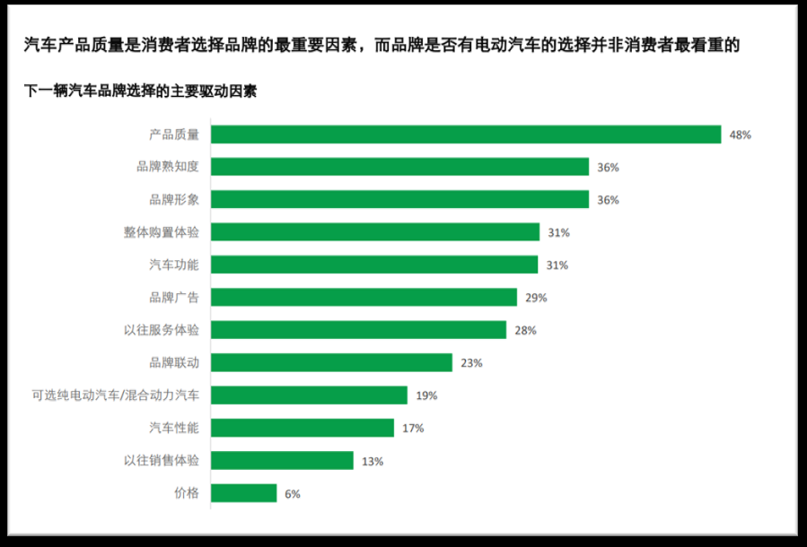 所幸,大部分主流消费者的认知还是理性的。著名咨询公司德勤中国去年做过一次针对国内市场的汽车消费者调查,在选择汽车品牌时,产品质量依然是消费者最先考虑的因素。