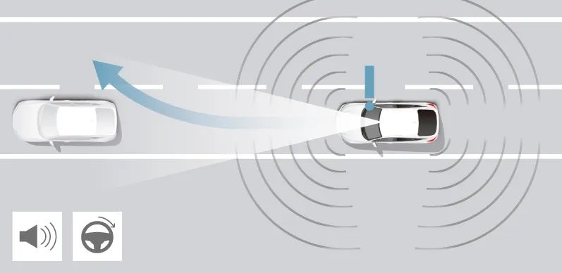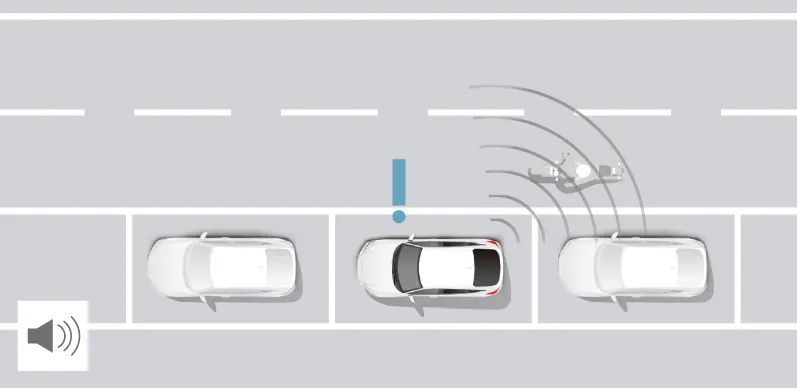 而在停车时,当检测到后侧方有车辆接近时,前A柱或后视镜上的指示灯将亮起以提醒注意。乘客准备下车打开车门时,当可能与侧方通过的车辆发生碰撞,指示灯闪烁同时发出警报声,提醒不要打开车门。