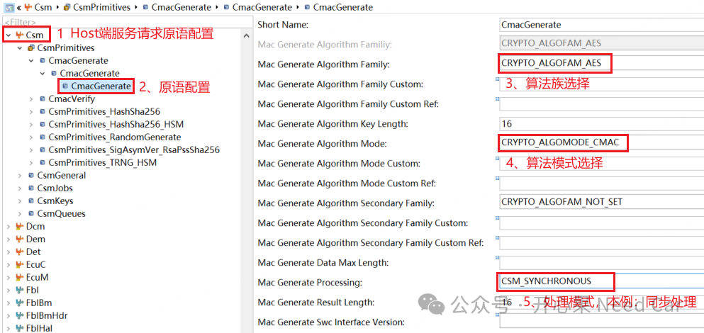 注意,Host端使用到的服务,对应的原语要和HSM端匹配,示意如下: