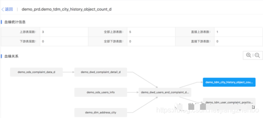 1.元数据查看一般是以树形结构组织元数据,按不同类型对元数据进行浏览和检索。如我们可以浏览表的结构、字段信息、数据模型、指标信息等。通过合理的权限分配,元数据查看可以大大提升信息在组织内的共享。2.数据血缘和影响性分析数据血缘和影响性分析主要解决“数据之间有什么关系”的问题。因其重要价值,有的厂商会从元数据管理中单独提取出来,作为一个独立的重要功能。但是笔者考虑到数据血缘和影响性分析其实是来自于元数据信息,所以还是放在元数据管理中来描述。血缘分析指的是取到数据的血缘关系,以历史事实的方式记录数据的来源,处理过程等。以某张表的血缘关系为例,血缘分析展示如下信息: