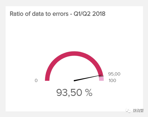 衡量准确性的典型指标是数据与错误的比率,它跟踪相对于数据集的已知错误(例如丢失、不完整或冗余条目)的数量。当然,这个比率应该随着时间的推移而增加,证明数据的质量会变得更好。没有具体的数据与错误比率,因为它很大程度上取决于数据集的大小和性质 – 但当然越高越好。在下面的示例中,我们看到数据错误率略低于 95% 准确率的目标: