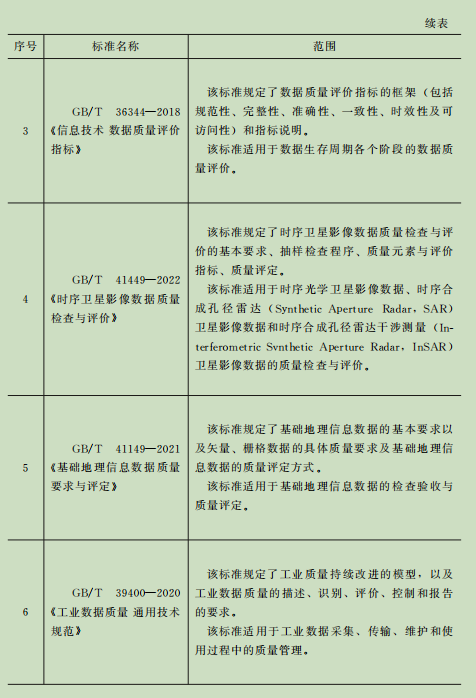 目前,国内围绕数据质量的评估和管理已出台了多项国家标准,主要如表1-13所示。