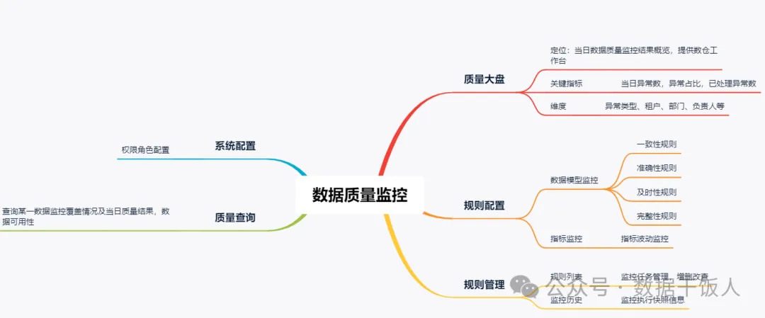 工欲善其事必先利其器,提升数据监控稽核规则的配置效率和覆盖度需要依赖于数据质量监控相关的产品,一般来说需要具备灵活的规则配置能力和批量操作的功能,随着AI的发展,增加更多的智能分析和预警能力。