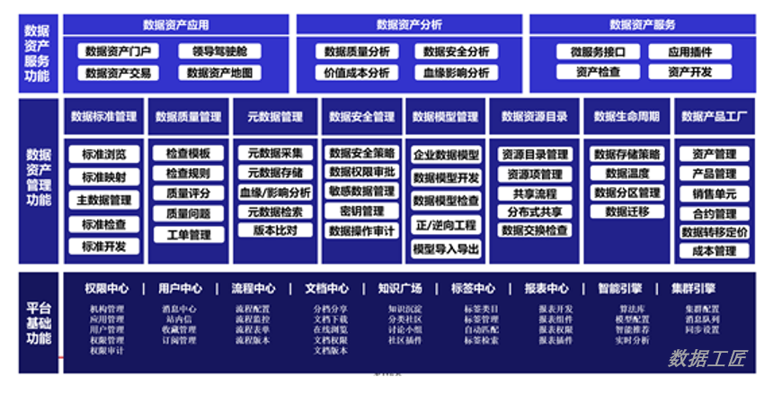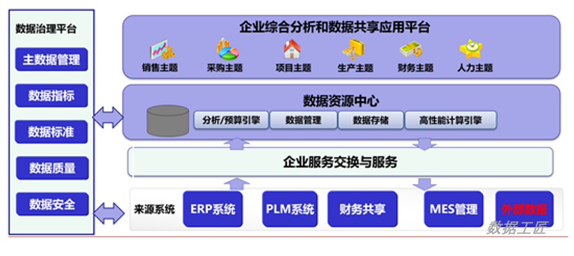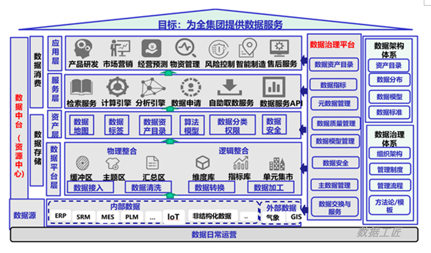 数据平台是通过企业内外部多源异构的数据采集、治理、建模、分析,应用,使数据对内优化管理赋能业务,对外可以数据合作价值释放,成为企业数据资产管理和服务中枢。