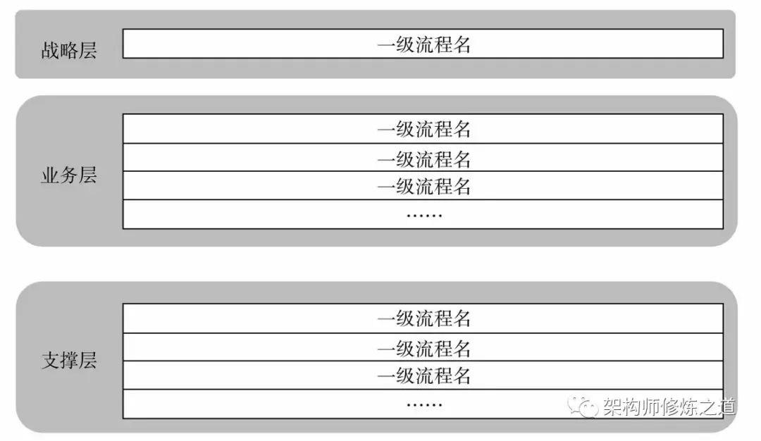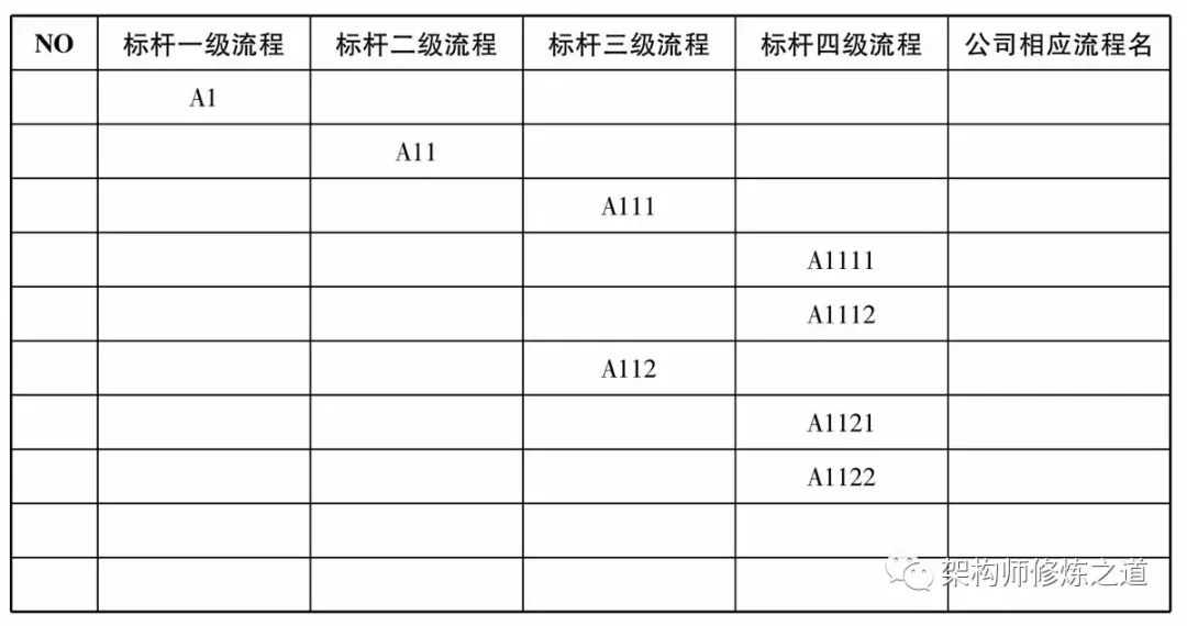 (7)一级流程规划和分级,层级最好不多于6级,分级是将流程的边界范围逐渐划小。