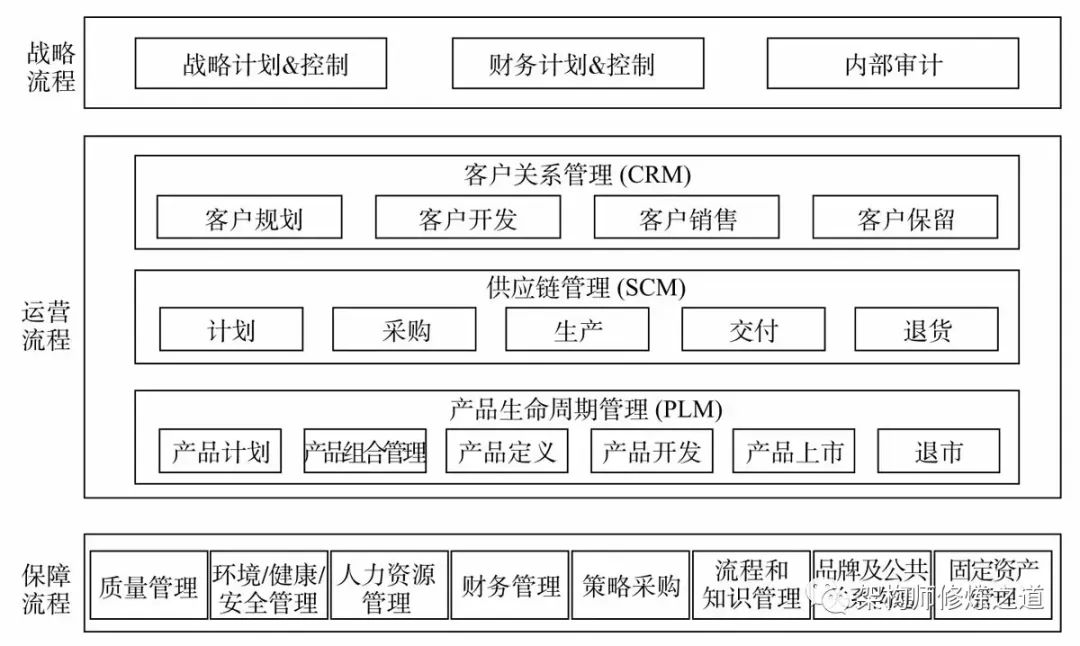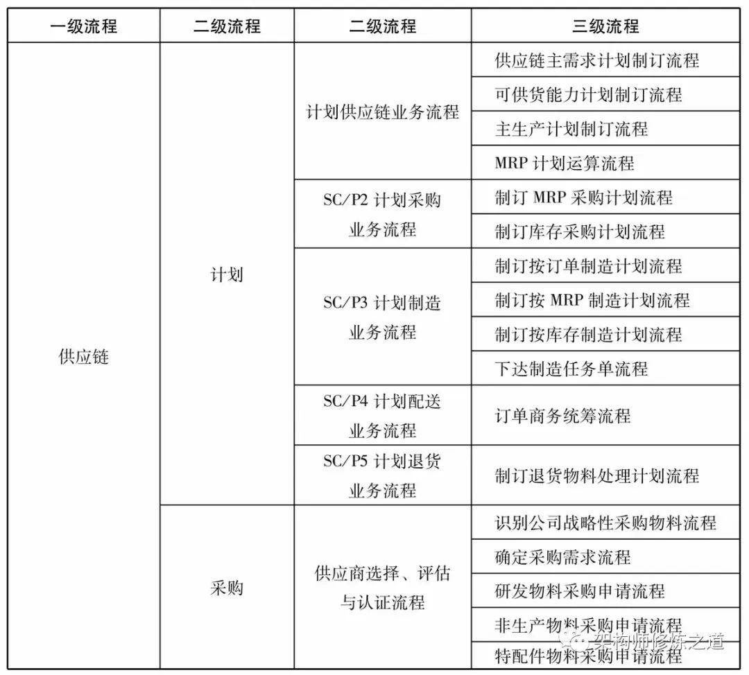 (6)在高阶流程架构设计中引入了最佳业务模型,如IPD(集成产品研发)、ISC(集成供应链)等,从流程结构上实现了整体优化。