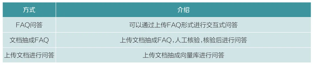 传统问答机器人的文件处理主要依赖业务理解和手动整理(如图3)。随着大模型的发展,当前的文件处理方法主要包括FAQ问答、文档生成FAQ,以及文档生成向量库(如表所示)。利用大模型自动从文档中提取FAQ,引入人工审查机制,提升大模型回答的可靠性,从而减少模型“幻觉”和偏见问题。