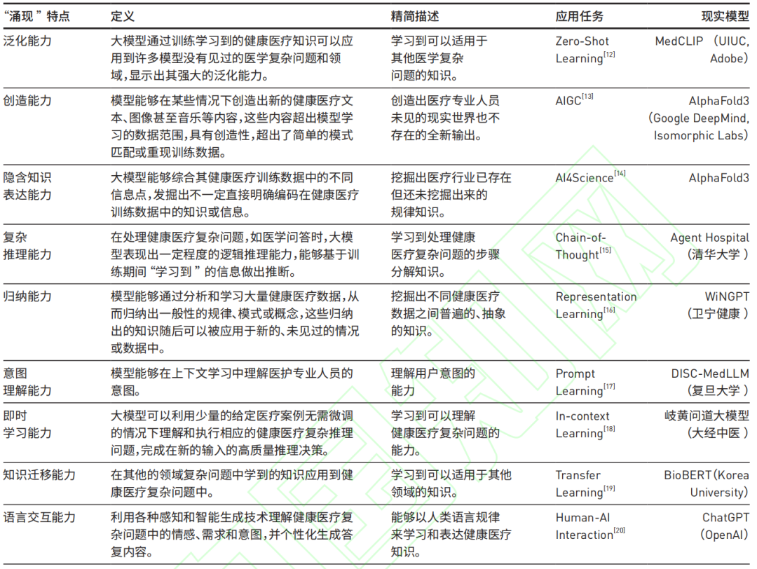 表1 健康医疗知识管理场景下的大模型“涌现”特征分析