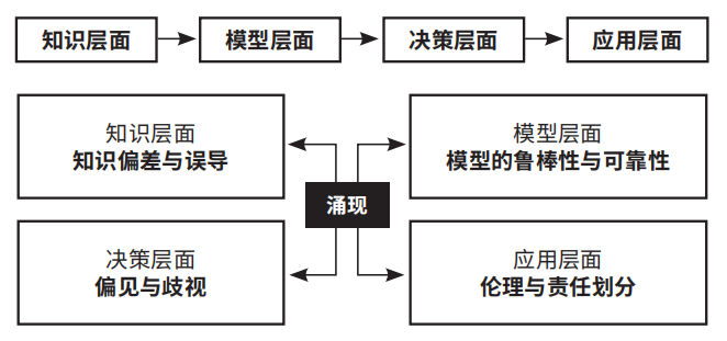 (3)偏见与歧视:大模型依赖于可能存在偏见的数据上进行训练,其“涌现”出的能力和结果可能产生或加剧社会、文化、性别、种族等方面的偏见与歧视。同时,由于其本身具有不透明性问题以及其所表现出的知识偏差与鲁棒性问题,也可能会导致医生或患者对医疗系统的不信任,进而影响健康管理结局。