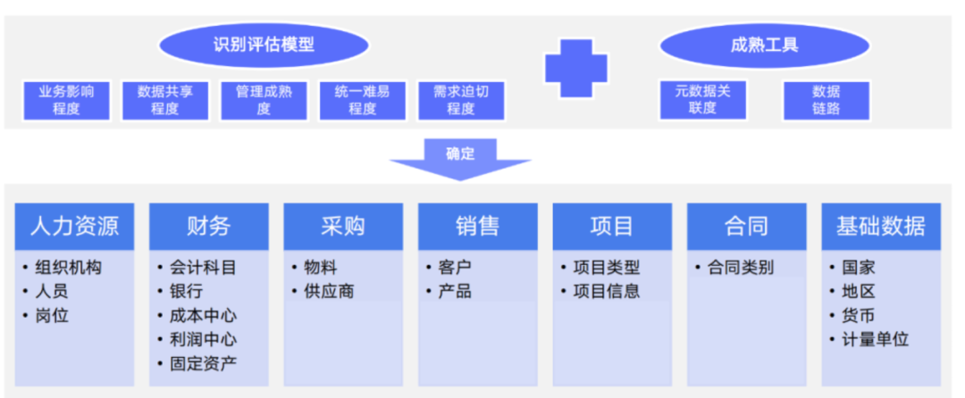 一个企业主数据会有很多,如果一次把所有主数据都管起来,工作量会很大,周期会很长,通常主数据会分2-3年去完成,并持续优化。这时候,主数据范围确定就很重要,给每个主数据排个优先级,企业最需要统一的、标准化程度高,基础好的、数据一致性好的、数据量可控的都是排序依据,最终根据优先级,我们分步建设主数据,这样可按期看到阶段性效果,便于项目推进。