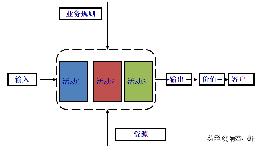 业务规则:业务规则就是流程活动的执行标准、方法要求以及其他规则。例如:产品检验时使用的质量标准,现场操作标准,培训标准等就是流程活动的执行标准;QFD、FMEA……就是流程活动的方法要求;地点、审批权限……就是流程活动的其他规则。资源:流程活动中的资源包括但不限于人、设备、场地、资金、时间……价值:流程输出所产生的效果以及传递给客户的价值。例如生产流程中产出的产品就是价值;同时领导安排做的项目方案,达到了领导的要求,也是价值。客户:流程输出的接收者,包括外部客户和内部客户。再企业思考自己或者部门的客户时,千万不要忘了,领导、老板也是你的客户。