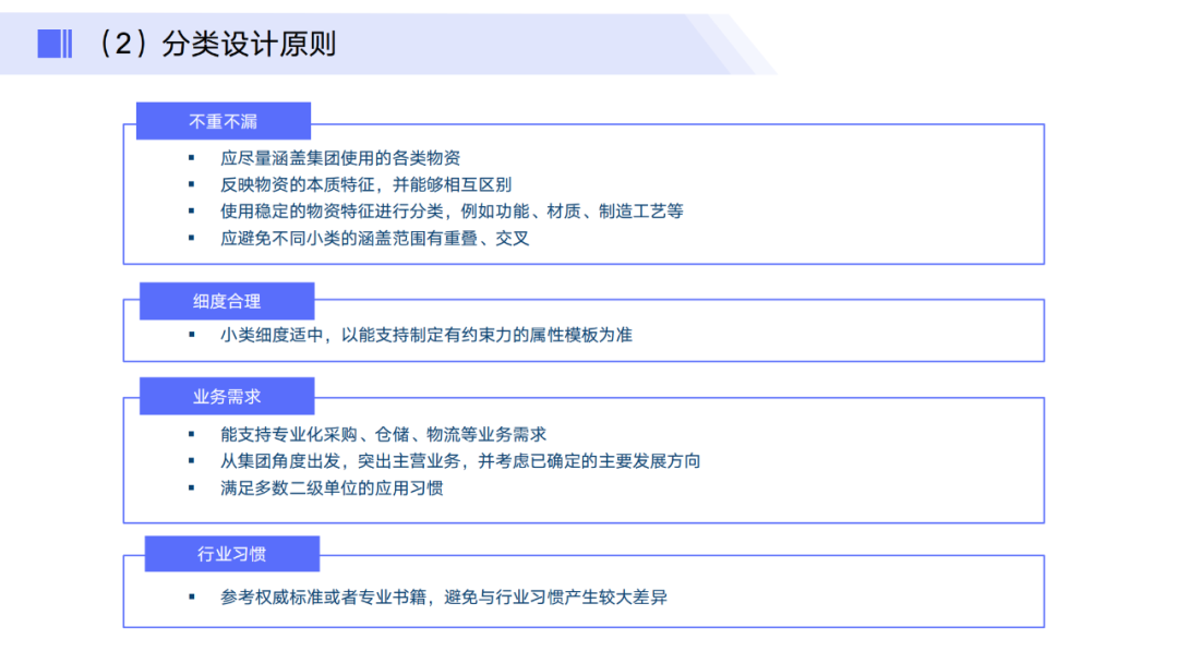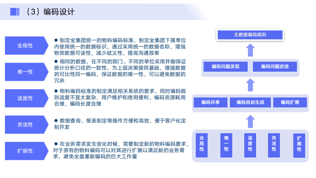 梳理并定义各类主数据(如客户、供应商、产品、组织机构等)的分类体系和编码规则。