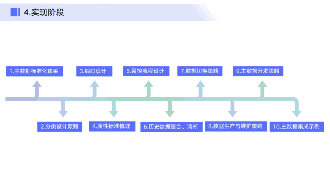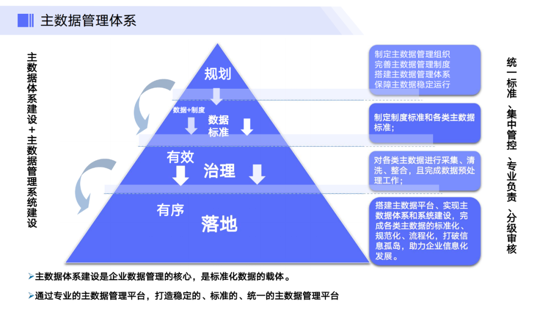 通过以上这些步骤和措施,企业能够逐步建立起一套完善的主数据管理体系,不仅有助于打破信息孤岛,提升数据的一致性和准确性,还能有效支持企业内外部的信息交流与业务协同,为大数据分析、智能化运营和决策支持提供坚实的数据基础。