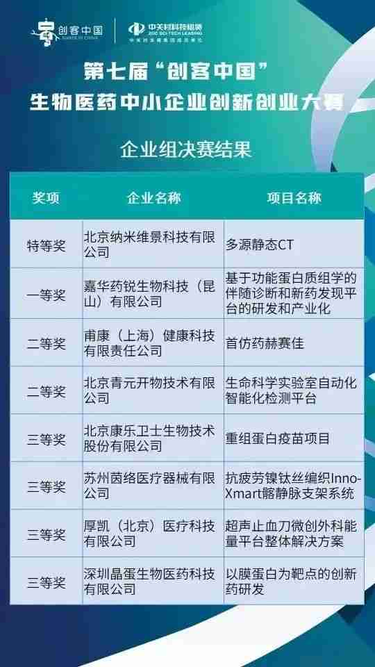 第七届“创客中国”生物医药中小企业创新创业大赛获奖名单如下: