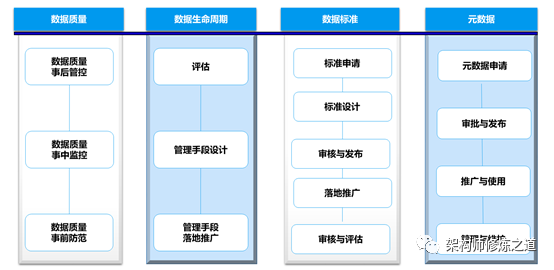 管控域:在数据治理战略指导下制订企业数据治理组织,明确组织的责、权、利,岗位编制及技能要求。